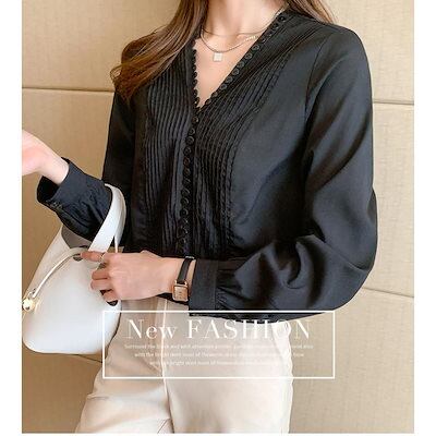 ブラウス レディース きれいめ 春新作 オシャレ シャツ 無地シャツ 長袖トップス vネック 大人 通勤 ゆったり