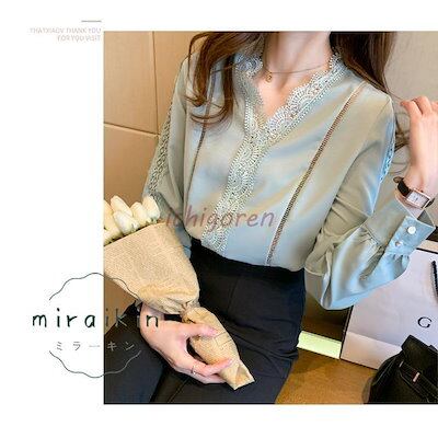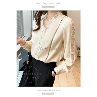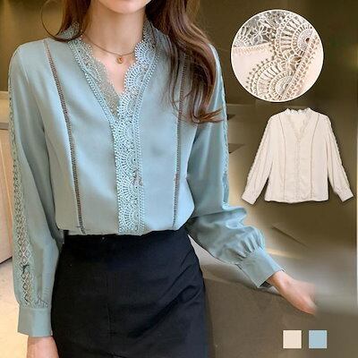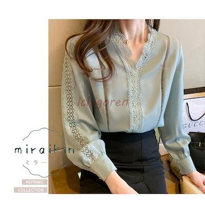新品 大人気 ブラウス レディース 春 夏 春夏 トップス チュニック 長袖 シャツ レース きれいめ ベージュ ブルー オフィス カジュアル 20代 30代 40代 50代