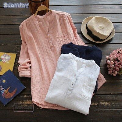 新作 セール シャツ ブラウス レディース 春 トップス 白シャツ 長袖 綿 tシャツ チュニック 無地 ゆったり 着痩せ 春シャツ ナチュラル 大人 通勤 旅 30代 40代