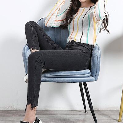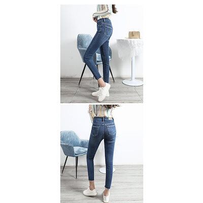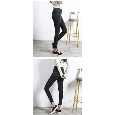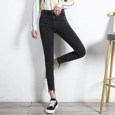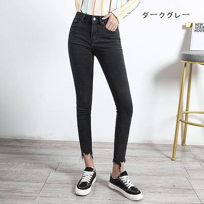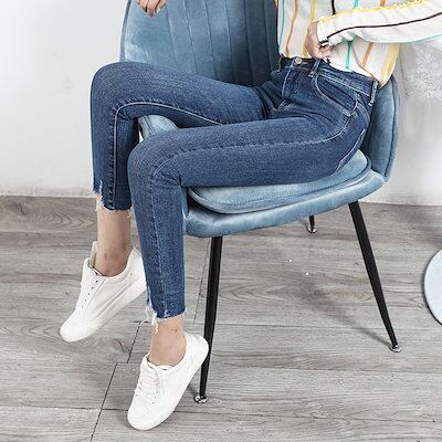 【メガ割 】レディース ボトムス 美脚 裾フリンジスキニーデニム チノパンツ ジーンズ 九分丈 2色