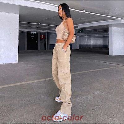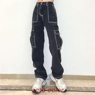 カーゴパンツ レディース ワイドパンツ ルーズ 春 秋 デニム デニムパンツ カジュアル ゆるっと ゆったり おしゃれ ワークパンツ チノパンツ