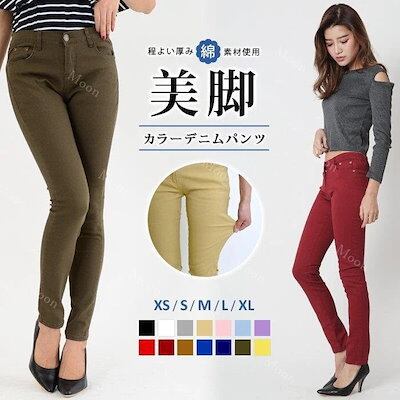 ストレッチ デニムパンツ レギパン レディース チノパン スキニー デニム カラーパンツ レギ