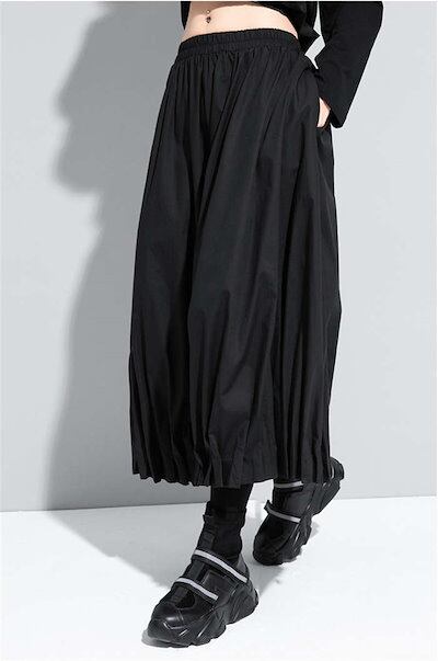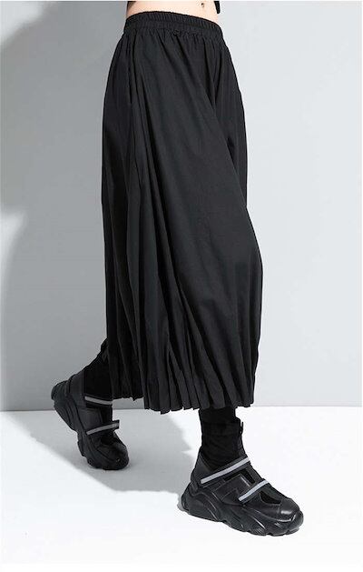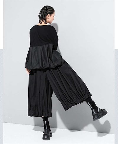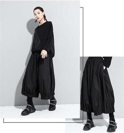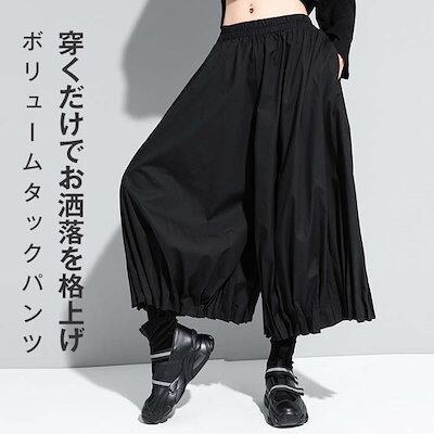 タックボリュームパンツ ワイドパンツ レディース スカート風 ドレープ チノパンツ ボトムス 裾タック ロングパンツ ガウチョ ボリューム 無地 メンズ ユニセックス ゆったり 黒 モード系 ダンス