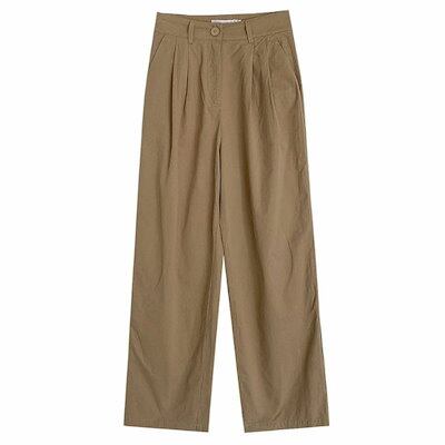 ワイドパンツ レディース ストレートパンツ タック入り チノパン 体型カバー ハイウエスト タックパンツ 春 秋 長ズボン ロングパンツ バギーパンツ チノパンツ 無地 シンプル ボトムス カジュアル
