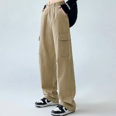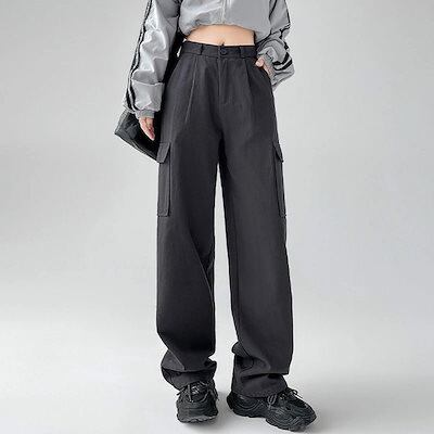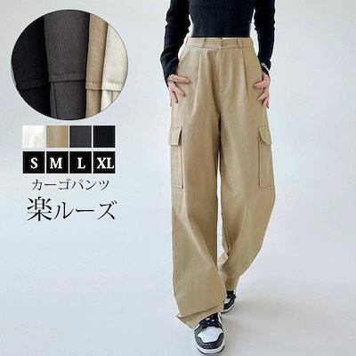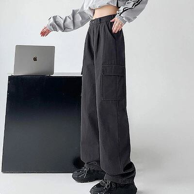カーゴパンツ レディース ボトムス ワイドパンツ 秋冬 きれいめ ベイカーパンツ パンツ ワイド ストレート チノパン 大きいサイズ ストレートパンツ ロングパンツ ハイウエスト ゴム 縦ライン ゆっ