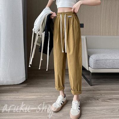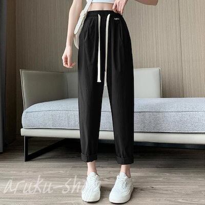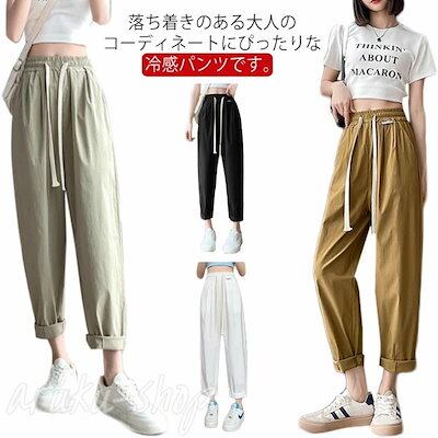 チノパン イージーパンツ レディース 大人可愛い アイスシルク UVカット 接触冷感 ロングパンツ ボトムス 無地 テーパードパンツ 長ズボン ロング ウエストゴム 調整紐 ゆったり カジュアル 春夏
