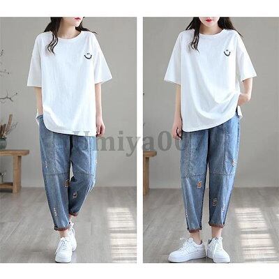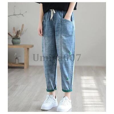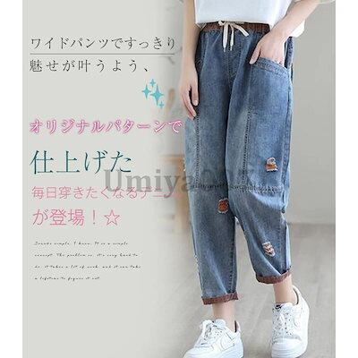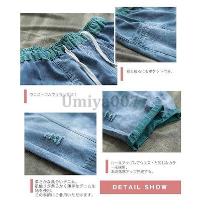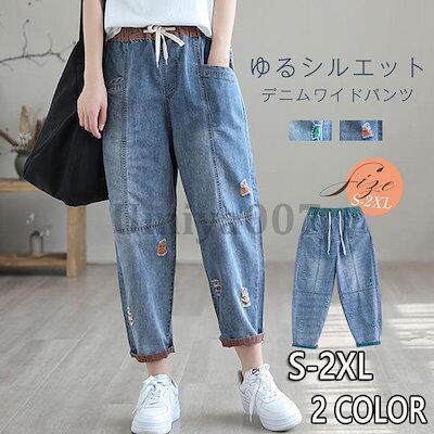 チノパン ワイドパンツ 大きいサイズ デニムパンツ テーパードパンツ ジーンズ ゆったり ロールアップ ボトムス ウエストゴム レディース 体型カバー