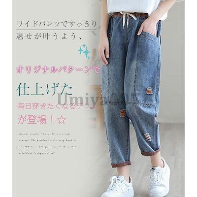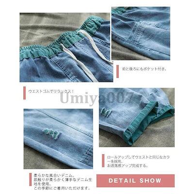 デニムパンツ 大きいサイズ ゆったり ボトムス ロールアップ ウエストゴム ワイド 体型カバー レディース テーパードパンツ チノパン ジーンズ