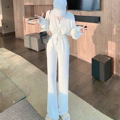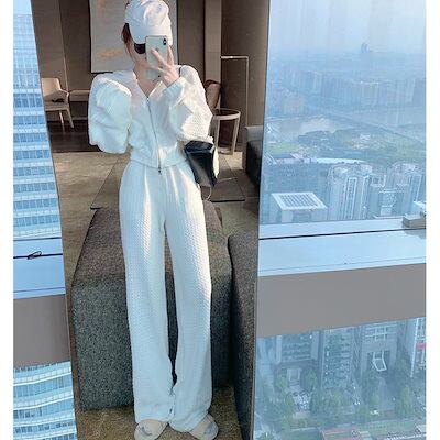 2024 秋 セットアップ フード付きス ウェット ワイドパンツ レディース 二点セット 韓国おしゃれカジュアルゆったり着痩せセット スウェット レディー 秋服