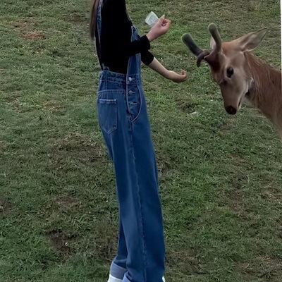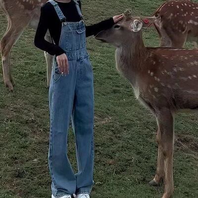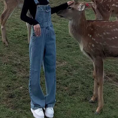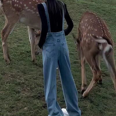 2025年春 カジュアル優しげデザインで着やせレトロなデニム サロペット コーデ完成 サロペット ワイドパンツ 韓国ファッション デニム
