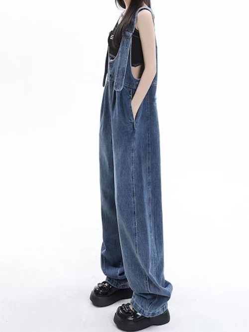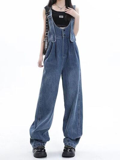 サロペット 韓国ファッション ゆったり レトロ オーバーオール 着痩せ 若見え オールインワンパンツ 流行り ワイドパンツ ジーンズ レディース ズボン 春服