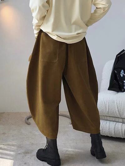 2024 スラックス パンツワイドパンツ レディースロングウエストゴム無地美脚 韓国ファッション リネンワイドパンツ レディース