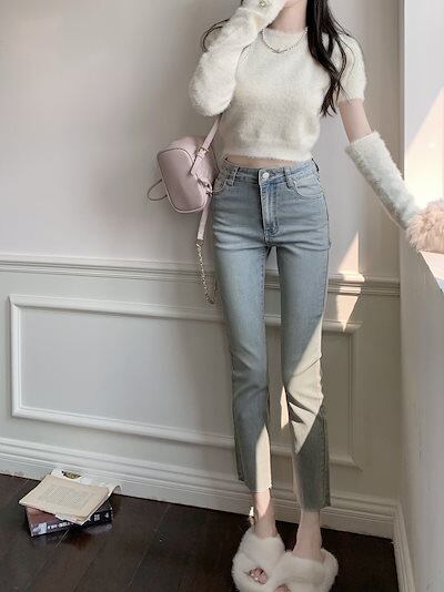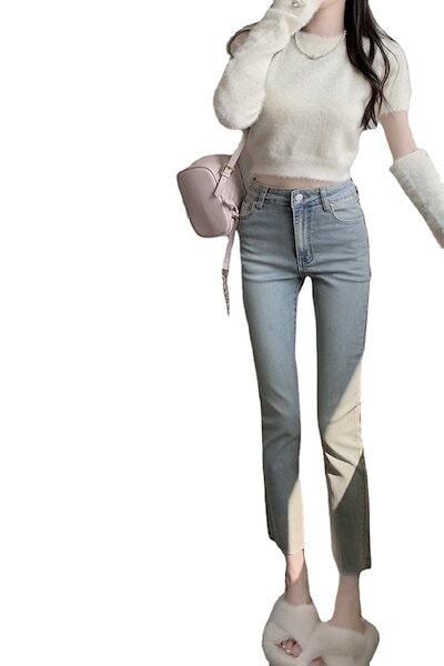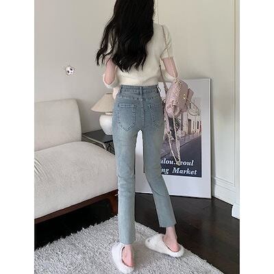 脚長効果!スキニーデニムパンツ 2025春夏 カジュアル 水洗ストレッチタイト 9分小足ペンシルパンツ ダメージ ロングパンツ レディース ワイドパンツ