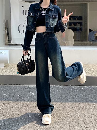 デニムジャケット デニムパンツ セットアップ ジーンズ ジーパン ショート ワイド パンツ ストレート アウター 羽織り ウォッシュ加工 学生 上下セット カジュアル ハイウエスト