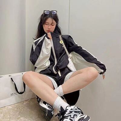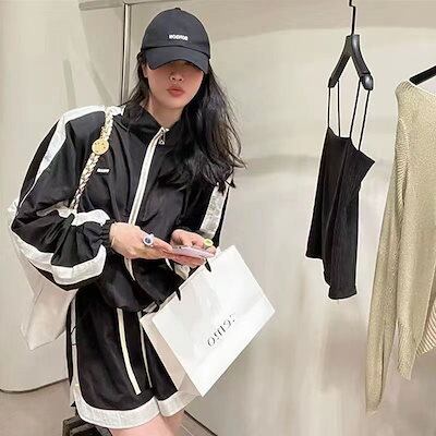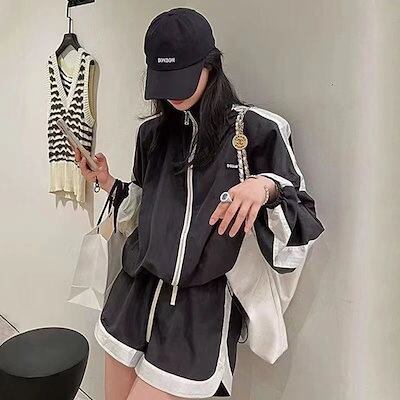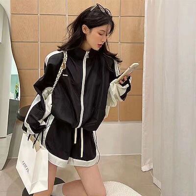 2024 夏 上下セット 2点セット アウター ボトムス ジャケット パンツ 長袖 ショート 夏 レディース スポーツ カジュアル ワイドレッグ ジッパー
