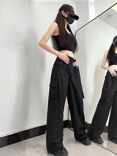ワイドパンツ レディース夏 着痩せドレープ感 ロングパンツ レディース服 デザイン感 ハイウェストゆったり 長ズボン ロングズボンモップパンツ ワイドパンツ綿