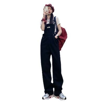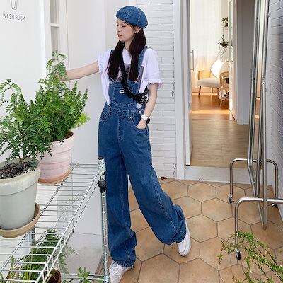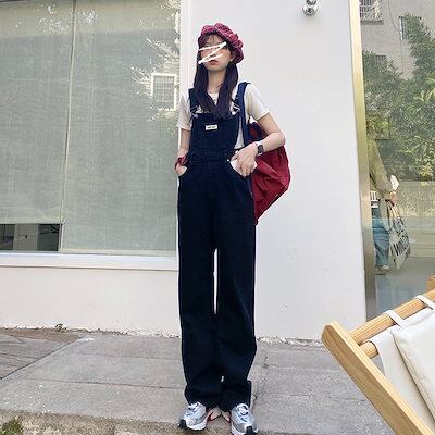 コーデ完成!サロペット デニム 港風カジュアル ジーンズ ワイドパンツ 韓国ファッション 体型カバー ゆったり ストレート オーバーオール リネンパンツ ゆったり 無地 カジュアル ストレートワイドパ