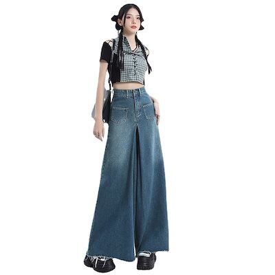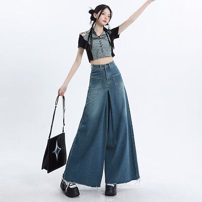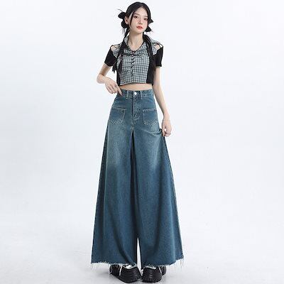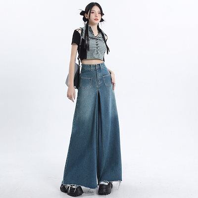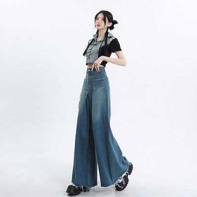 ワイドパンツ レディース モップパンツ 着痩せ ジーンズ ロングパンツ レディース服 デザイン感 ハイウェストゆったり 長ズボン ロングズボン ワイドパンツ
