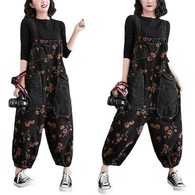 コーデ完成!サロペット ジーンズ ワイドパンツ 韓国ファッション 体型カバー ゆったり ストレート オーバーオール リネンパンツ ゆったり 無地 カジュアル ストレートワイドパンツ