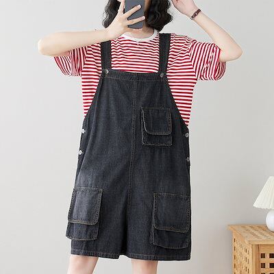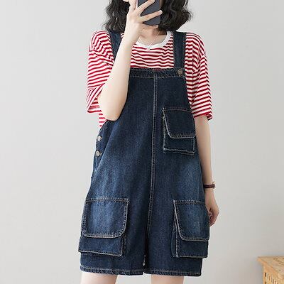コーデ完成!サロペットジーンズ ワイドパンツデニム 韓国ファッション 体型カバー ゆったり ストレート オーバーオール リネンパンツ ゆったり 無地 カジュアル ストレートワイドパンツ