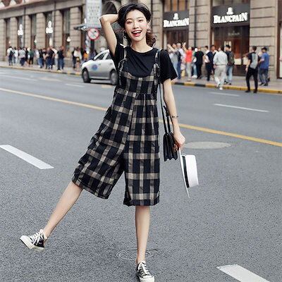 コーデ完成!サロペット高級感 ゆったり ワイドパンツ 韓国ファッション 体型カバー ゆったり ストレート オーバーオール リネンパンツ ゆったり 無地 カジュアル ストレートワイドパンツ