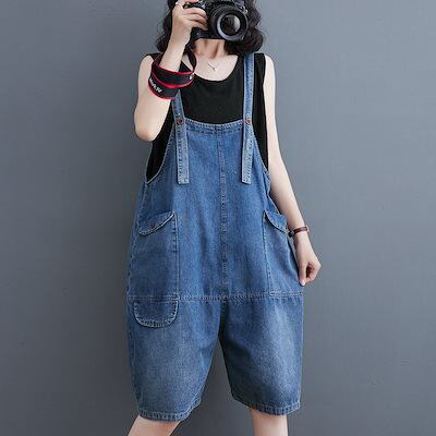 コーデ完成!サロペットジーンズ 韓国ファッション 体型カバー ゆったり ストレート オーバーオール リネンパンツ ゆったり 無地 カジュアル ストレートワイドパンツ