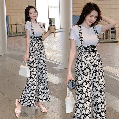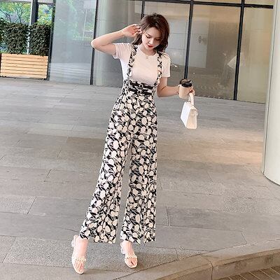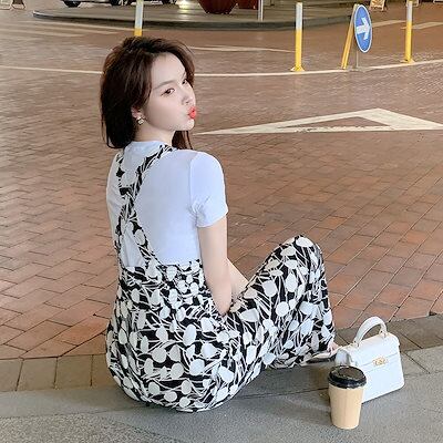コーデ完成!サロペットスリミングハイウエスト ワイドパンツ 韓国ファッション 体型カバー ゆったり ストレート オーバーオール リネンパンツ ゆったり 無地 カジュアル ストレートワイドパンツ