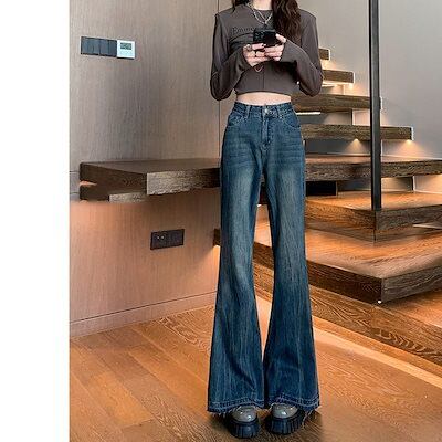 デニムパンツ ヴィンテージ マイクロラージ ジーンズ レディース ハイウエスト 細身 ワイドパンツ フレアパンツ デニムパンツ