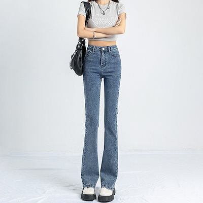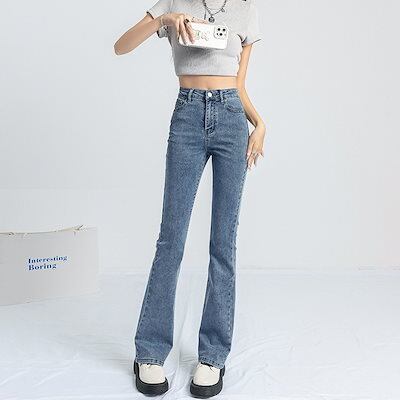 デニムパンツ アメリカンスタイル レトロ ジーンズ 春秋新作 レディース ハイウエスト 薄手 小さい フレアパンツ ホースシューパンツ 韓国