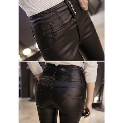 レザーパンツ レディース フェイクレザー ロングパンツ ハイウエスト 裏起毛パンツ スキニー レギンス PU 合皮 防風防寒 防水 お洒落 美脚