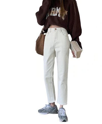 脚長効果スキニーパンツ デニムボトムス タイトパンツ 9分丈パンツ 弾力 ストレート 韓国ファッション デニムパンツ ズボン ハイウエスト レディースパンツ ストレート ロングズボン