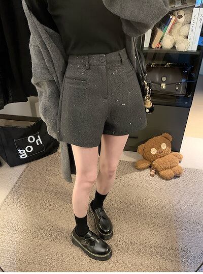 韓国ファッションショートパンツ 防寒厚手パンツシンプル ショート丈 ハイウエストショートパンツ 脚長 美脚細見え百掛けパンツ レディース