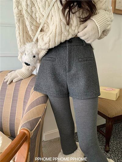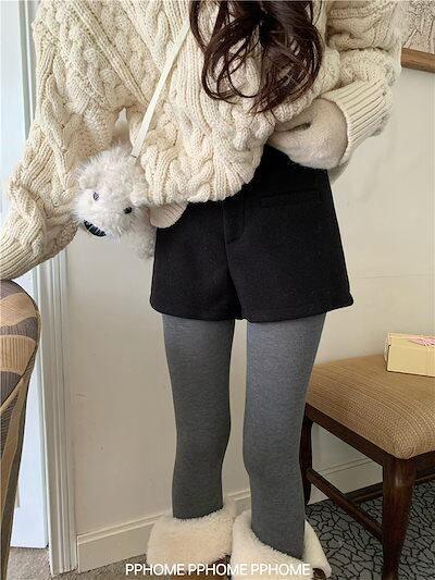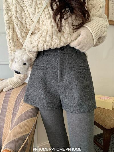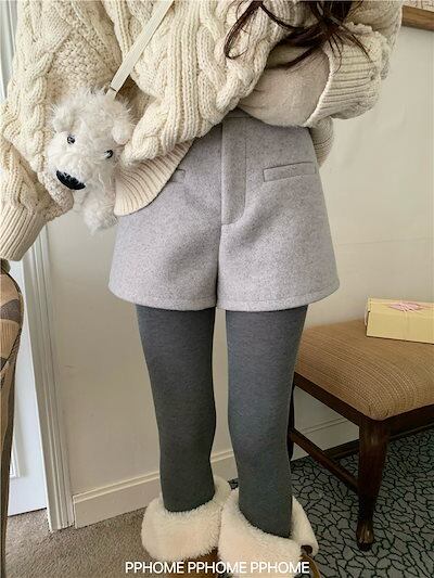 韓国ファッションショートパンツ 防寒パンツ Aライン ショート丈ストレートハイウエストショートパンツ 脚長 美脚細見え パンツ レディース