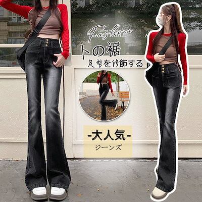 韓国ファッション 夏 ジーンズ スキニー レッグ ハイウエスト おしゃ 細見え ジーンズ レディース ワイドパンツ 着痩せ ワイドパンツ デニム デニムボトムス デニムパンツ ひんやりボトムス ワイド