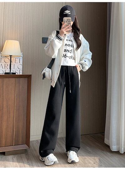 厚手 裏起毛 スラックスパンツ ワイドパンツ ロイワイドパンツ タイプ ゆったり ストレートパンツ 韓国ファッション レッグパンツ レディース秋冬 ハイウエス 脚長効果!スキニーパンツ ひんやりボトム