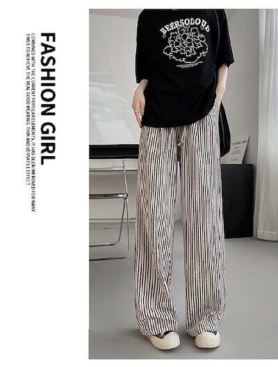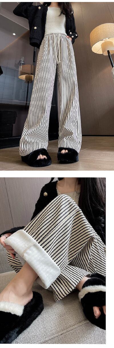 ワイドパンツ レディース 裏起毛 タックワイドパンツ ストレートパンツ ボトムス パンツ 綿 ワイド スラックス ロング マキシ丈 ストライプ柄 美シルエット タックパンツ ハイウエスト ゆったり