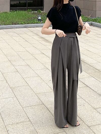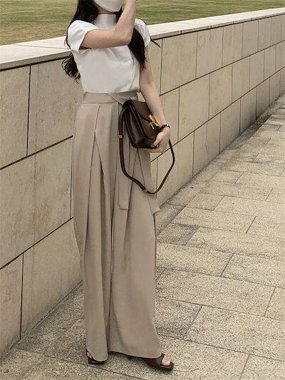 ワイドパンツ レディース 春 夏 ストレートパンツ ボトムス パンツ ワイド スラックス ロング マキシ丈 美シルエット タックパンツ ハイウエスト 上品 ゆったり カジュアル 着痩せ ボトムス 無地