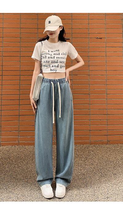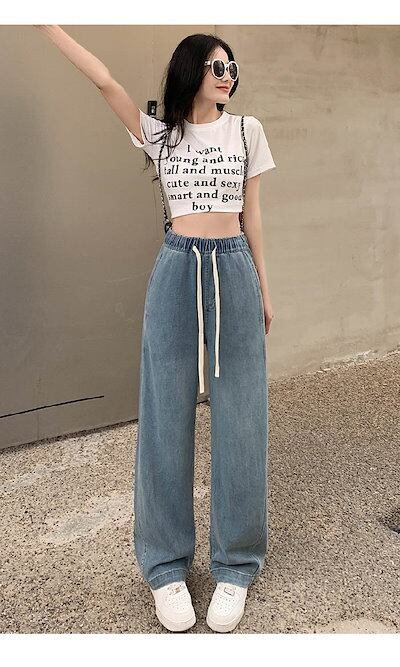 ワイドパンツ レディース デニム パンツ ウエストゴム デニム 接触冷感 春 夏 ひんやり UVカット 無地 薄手 涼しい ロング丈 ストレート パンツ ジーンズ ゆる パンツ ガウチョ 体型カバー