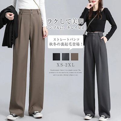 ストレートパンツ レディース 裏起毛 ワイドパンツ ボトムス パンツ ワイド スラックス ロング マキシ丈 美シルエット タックパンツ ハイウエスト 上品 ゆったり カジュアル 着痩せ ボトムス 無地