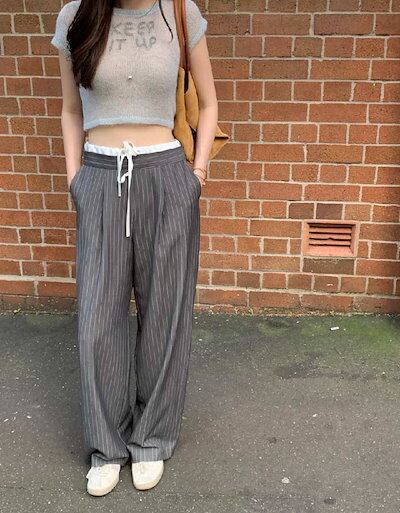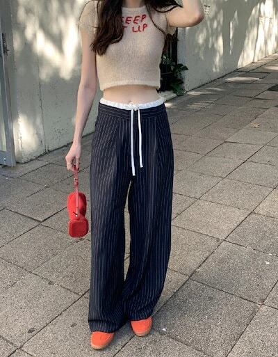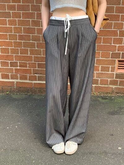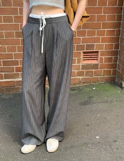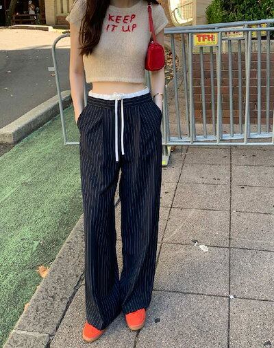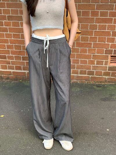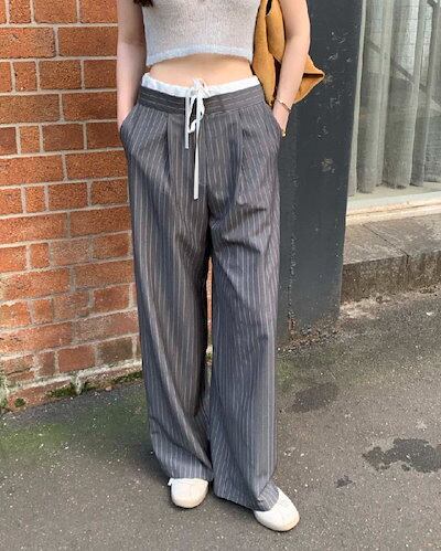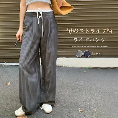 ワイドパンツ レディース タックワイドパンツ ストレートパンツ ボトムス パンツ ワイド スラックス ロング マキシ丈 ストライプ柄 美シルエット タックパンツ ハイウエスト ゆったり カジュアル