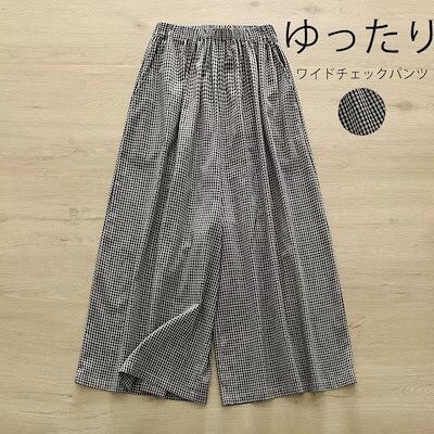 ワイドパンツ 夏 レディース チェック ガウチョ パンツ ガウチョパンツ 七分丈 ボトムス 大きいサイズ チェックパンツ 春夏 薄手 涼しい ストレートパンツ ワイド ズボン 長ズボン ウエストゴム