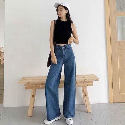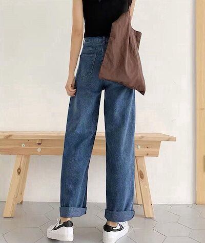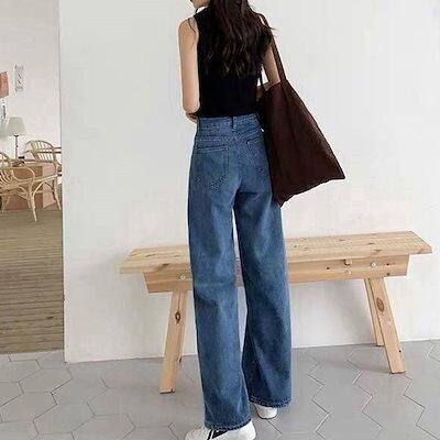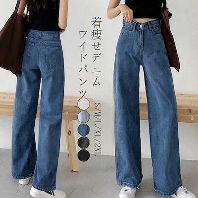 ワイドパンツ デニム レディース デニムパンツ ワイド きれいめ ボトムス ストレートパンツ ハイウエスト ジーンズ ズボン 長ズボン パンツ 着痩せ おしゃれ 無地 カジュアル 普段着 大きいサイズ