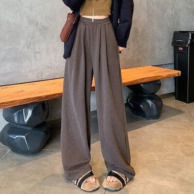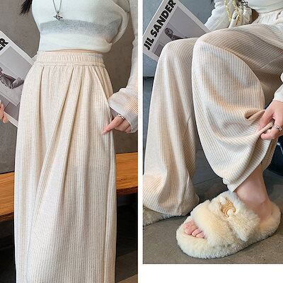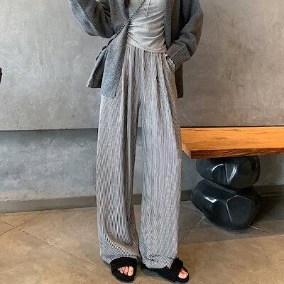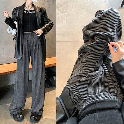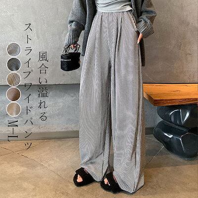 ワイドパンツ 秋冬 ストライプパンツ レディース パンツ ストライプ きれいめ ロングパンツ ボトムス ストレートパンツ ワイドパンツ きれいめ ウエストゴム ズボン 長ズボン ロング 柄 カジュアル