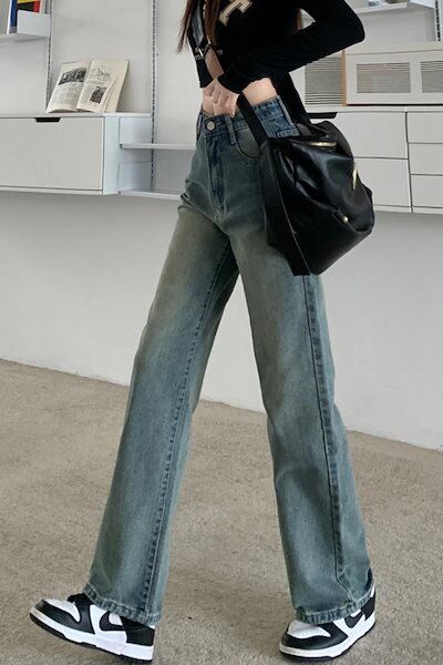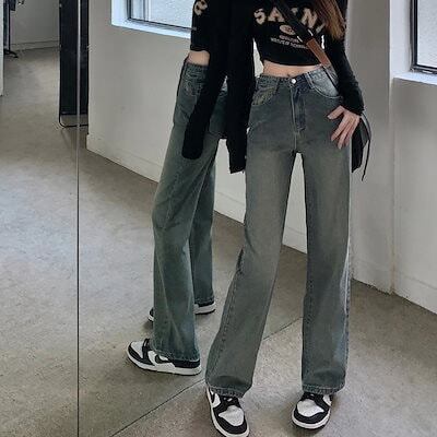 ワイドパンツ 薄いブルー デニム レディース 2023 秋 新作 美脚 ストレートレッグパンツ