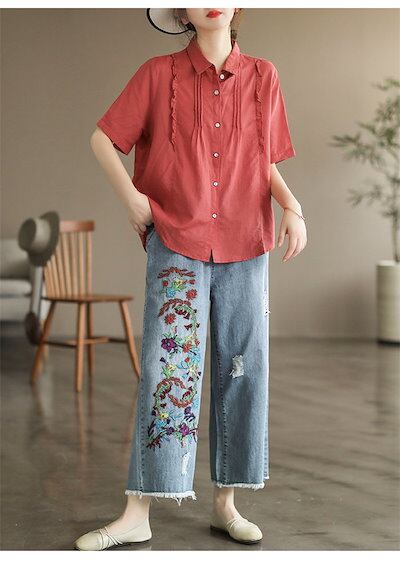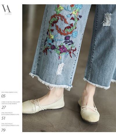 デニムパンツ ストレートパンツ レディース 9分丈 ジーパン ゆったり ワイドパンツ 刺? 美脚 デニムパンツ 柔らか バギー ボトムス チノパン 大きいサイズ 春秋 カジュアル ウエストゴム 体型カ