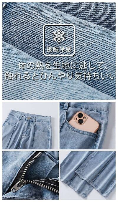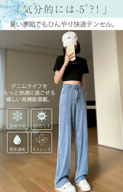 ワイドパンツ デニム 接触冷感 レディース パンツ 夏 春 冷感 ワイド ストレッチ ストレート ガチョウパンツ 吸汗 速乾 通気 UVカット 涼しい ハイウエスト ポケット ゆったり 無地 楽ちん
