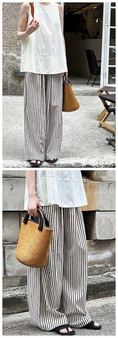 ワイドパンツ レディース ガウチョパンツ ストライプパンツ ストライプ ワイド タックパンツ ストレート 美シルエット ゆったり カジュアル きれいめ 大きいサイズ 体型カバー 大きいサイズ ウエスト