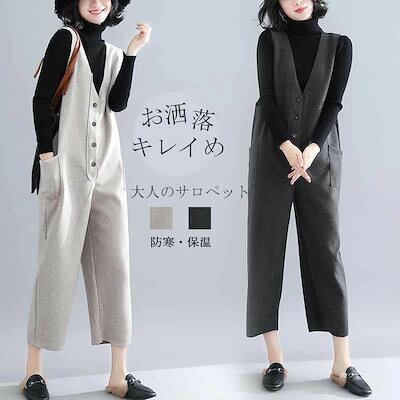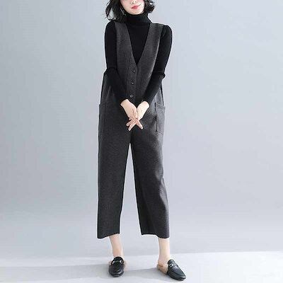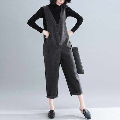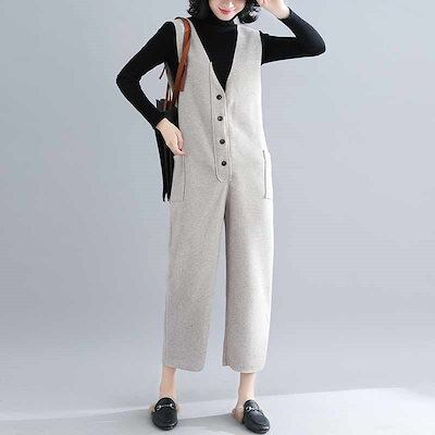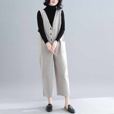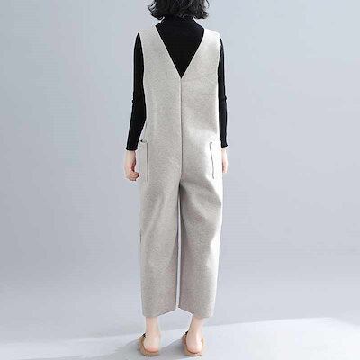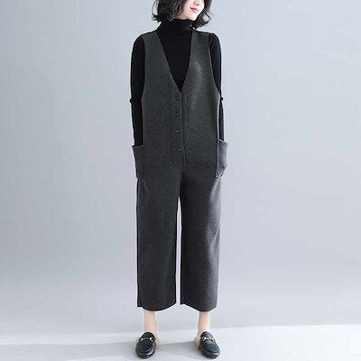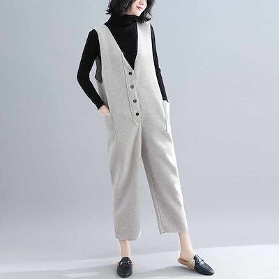 パンツ サロペット 秋冬 サロペットパンツ 秋 オールインワン vネック ロンパンツ レディース 厚手 大きいサイズ ボトムス ロング丈 パンツ ストレート ワイドパンツ ロング 冬 サロペットパンツ