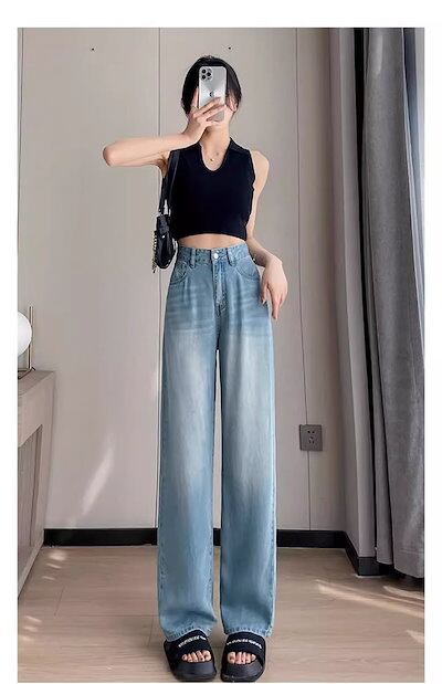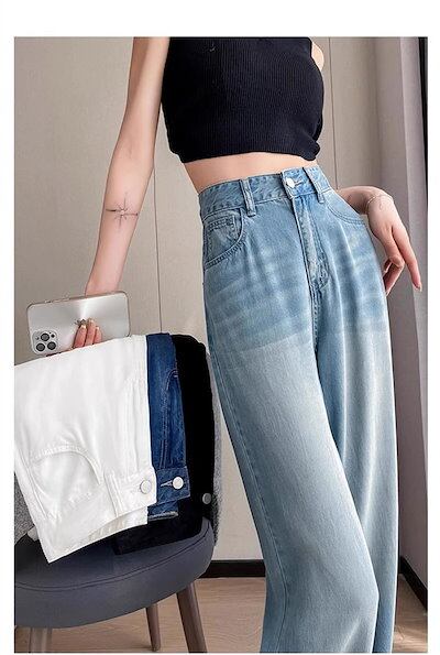 デニムワイドパンツ レディース デニムパンツ ストレートパンツ 薄手 ワイド デニム パンツ 接触冷感 涼しい ボトムス ロングパンツ ジーンズ 大きいサイズ ゆったり 体型カバー 大人 楽ちん 柔ら