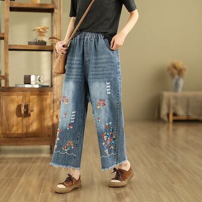 デニムパンツ レディース 春夏 ストレートパンツ クロップド ジーパン ゆったり ワイドパンツ 刺? 美脚 デニムパンツ 綿 コットン 柔らか バギー ボトムス チノパン 大きいサイズ 春秋 カジュア